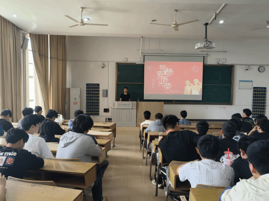 动员会特邀两位优秀退役士兵代表分享军营经历。武警某部退役士兵白岩海结合自身入伍经历,详细讲解了部队生活、军事训练及个人成长感悟,并鼓励同学们将专业知识与国防事业相结合,在军营中实现人生价值。随后,曾服役于武装侦察兵部队的杨宜康以“青春与迷彩同行”为主题,生动讲述了侦察兵日常训练、执行任务的难忘故事,展现了新时代军人坚韧不拔、勇担使命的精神风貌。