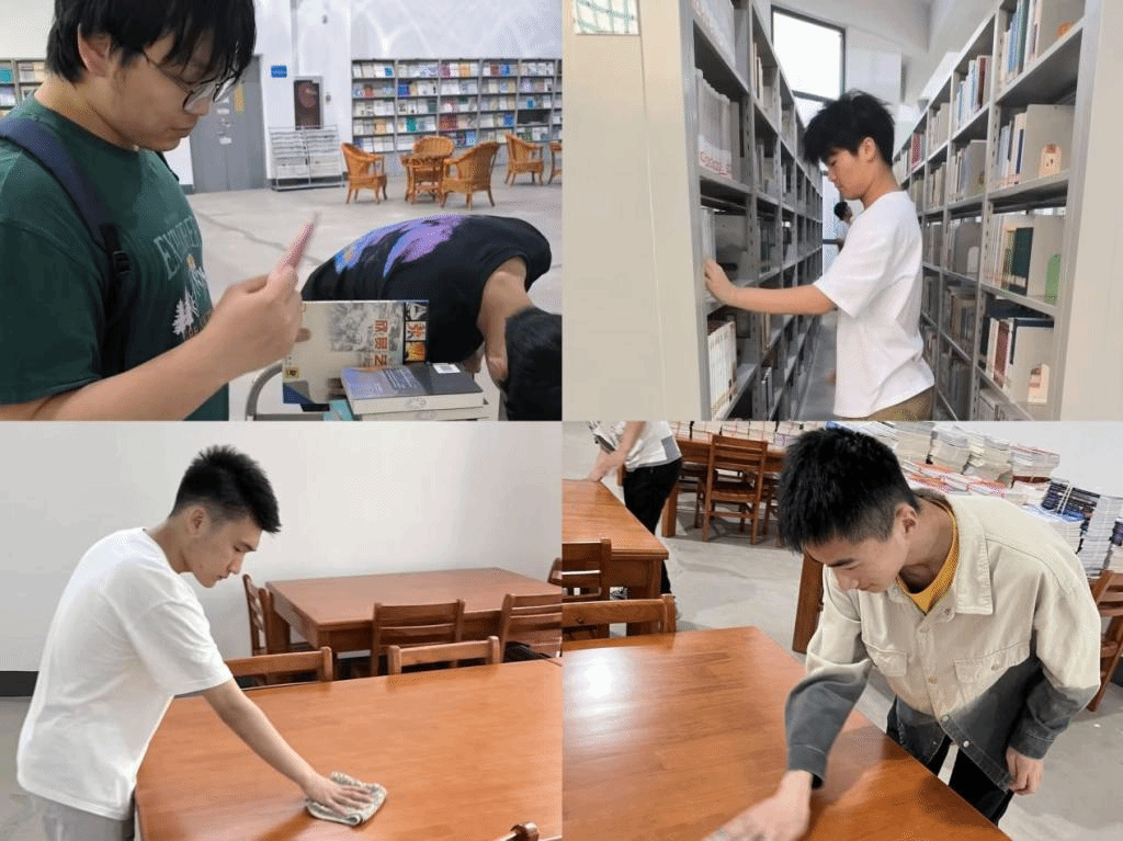 为了维护整洁、卫生的校园环境,在滨湖办、滨湖物业的协调配合下,辅导员组织安排同学们投身校园除草、实验室和教室清扫活动。在劳动中,员工们热情高涨,踏实认真,清理了绿化带的垃圾、干枯树枝,杂草,打扫了实验室和教室的门窗、地面、桌椅等。此外,同学们还分批次前往滨湖校区图书馆,协助图书管理员进行书籍整理志愿服务。了解完基本工作要求后,同学们通过编号对书籍进行归类,将其摆放在对应的书架上,实现了图书摆放井然有序。