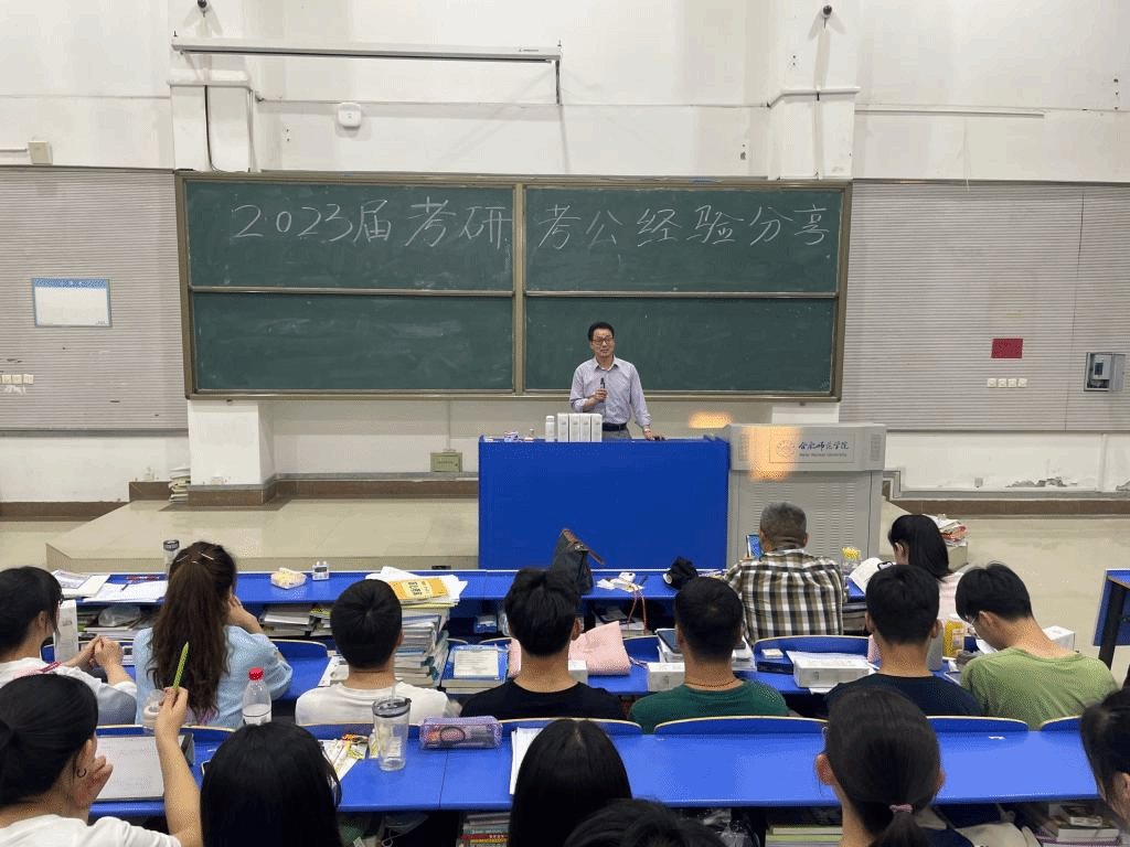 2022年5月23号下午6时,计算机公司在锦绣校区逸夫楼西阶教室举行2023届考研考公交流分享宣讲会。此次会议邀请了18级考研考公成功的学长学姐分享备考经验,计算机公司党委书记王祥、毕业班辅导员参加此次交流会
