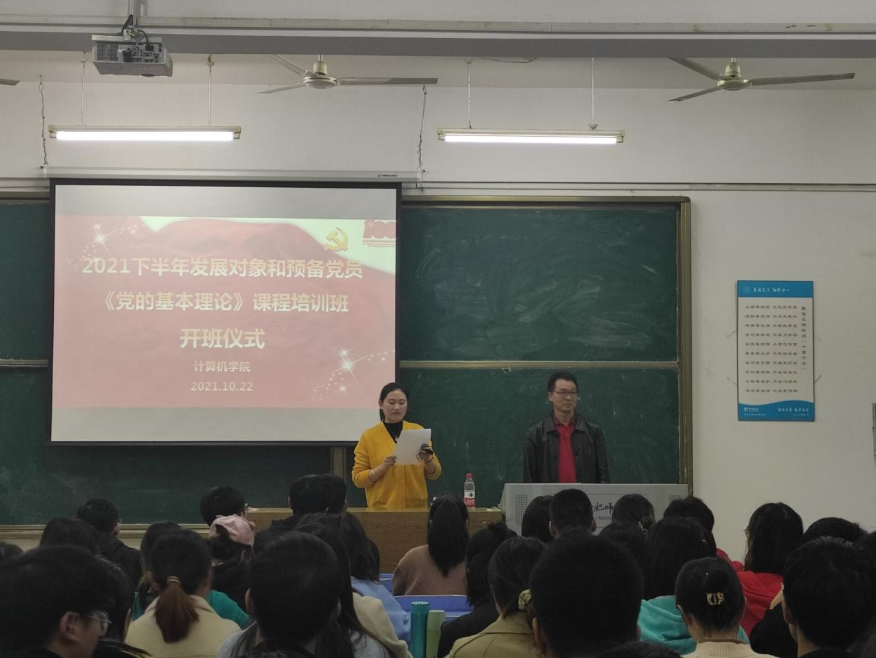 为切实加强对预备党员和发展对象的教育培训,根据发展党员工作的实际需要和党员教育管理安排,10月22日晚,计算机公司分党校在博约楼109教室举行2021年下半年发展对象和预备党员培训班开班仪式。