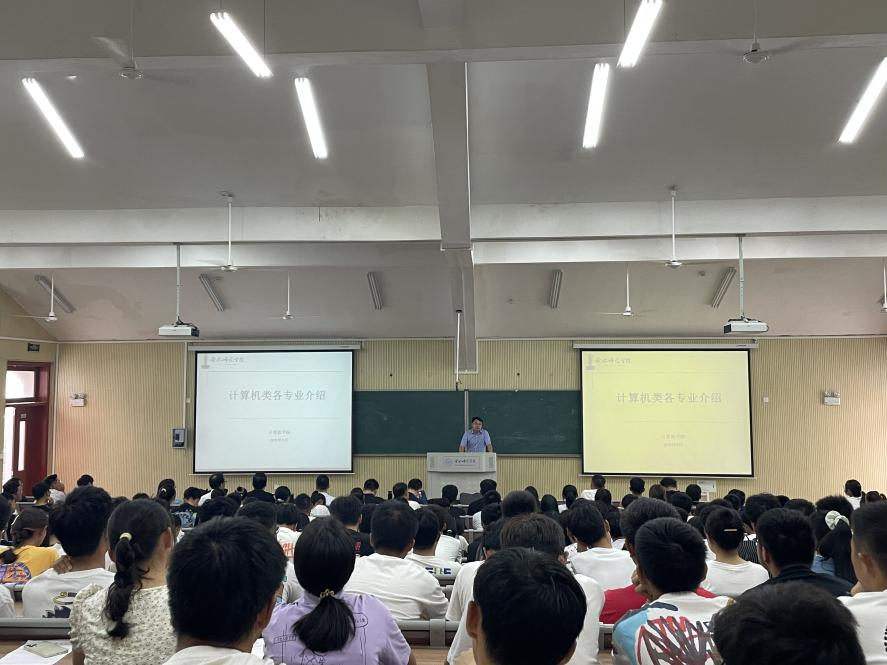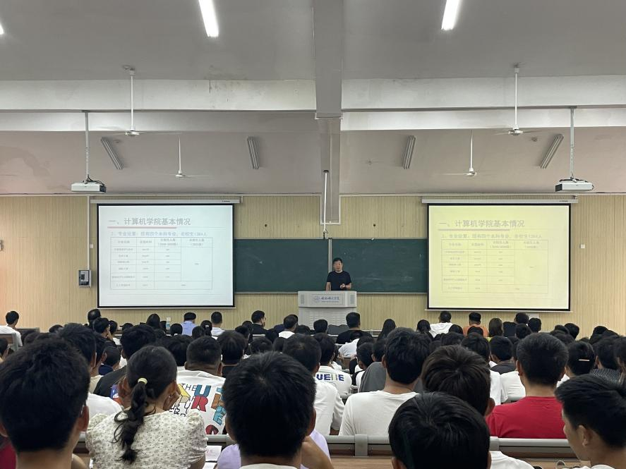 9月23日上午,计算机公司2021级师生见面会在滨湖校区铭传A101举行。计算机公司党委书记王祥、经理兼党委副书记郭玉堂、副经理谢飞、各专业系主任出席,计算机公司294名新生到场参加,会议由新生辅导员龚永琦主持。
