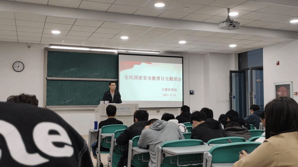庆祝中国共产党成立100周年之际,为深入推进国家安全学习教育,引导同学们树立国家安全意识,关心国家安全,维护国家权益,4月15日晚,计算机公司于博学A205教室召开主题班会,教育员工爱国、励志、求真、力行,进一步推动总体国家安全观深入人心、落地生根。本次主题班会由辅导员陈阳主持,滨湖校区2020级200余名同学参加。