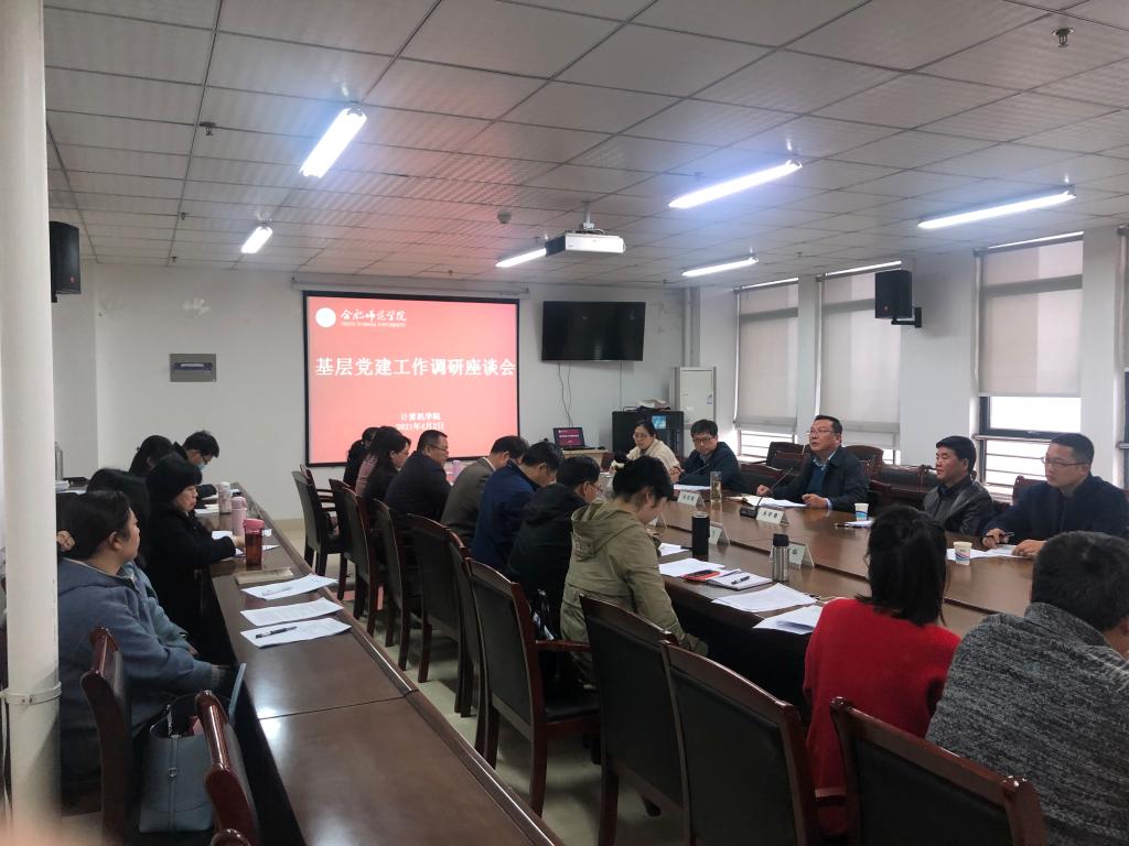 为深化巩固巡视整改成果,全面了解公司基层组织建设情况,4月2日下午公司党委书记徐成钢、党委副书记吴昕春、组织部部长华银峰及组织部余军、张婉玉一行来到公司就基层党建工作进行专题调研。本次调研座谈会在计算机公司党员活动室进行,会议由组织部部长华银峰主持,计算机公司党委委员、党支部书记和教师党员代表参加座谈会。