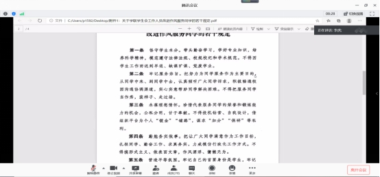 11月22日,计算机公司员工会召开关于高校员工组织作风建设警示教育线上会议,会议由计算机公司执行主席代志成主持,主席团成员及全体员工会工作人员参加本次大会。