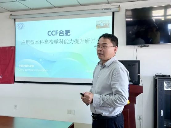 CCF合肥副主席、中国科学技术大学人工智能与数据科学公司副经理何向南致辞,他表示应用型本科高校学科能力提升研讨会作为CCF合肥标志性系列活动之一,旨在推动教育学术发展,希望通过本次活动,能够进一步加强高校之间的交流与合作,促进产学研深度融合。