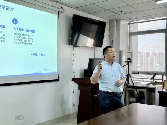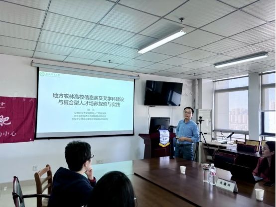 随后,安徽农业大学信息与人工智能公司教授、副经理饶元作《地方农林高校信息类交叉团队建设与复合型人才培养探索与实践》的报告,他从公司学科平台建设情况、特色优势、科研成果等多方面,讲述了公司该如何谋划学科专业建设发展规划。关于复合型人才培养,他指出,应该多奖项多措施激励员工产出高质量科研成果,增强员工获得感。
