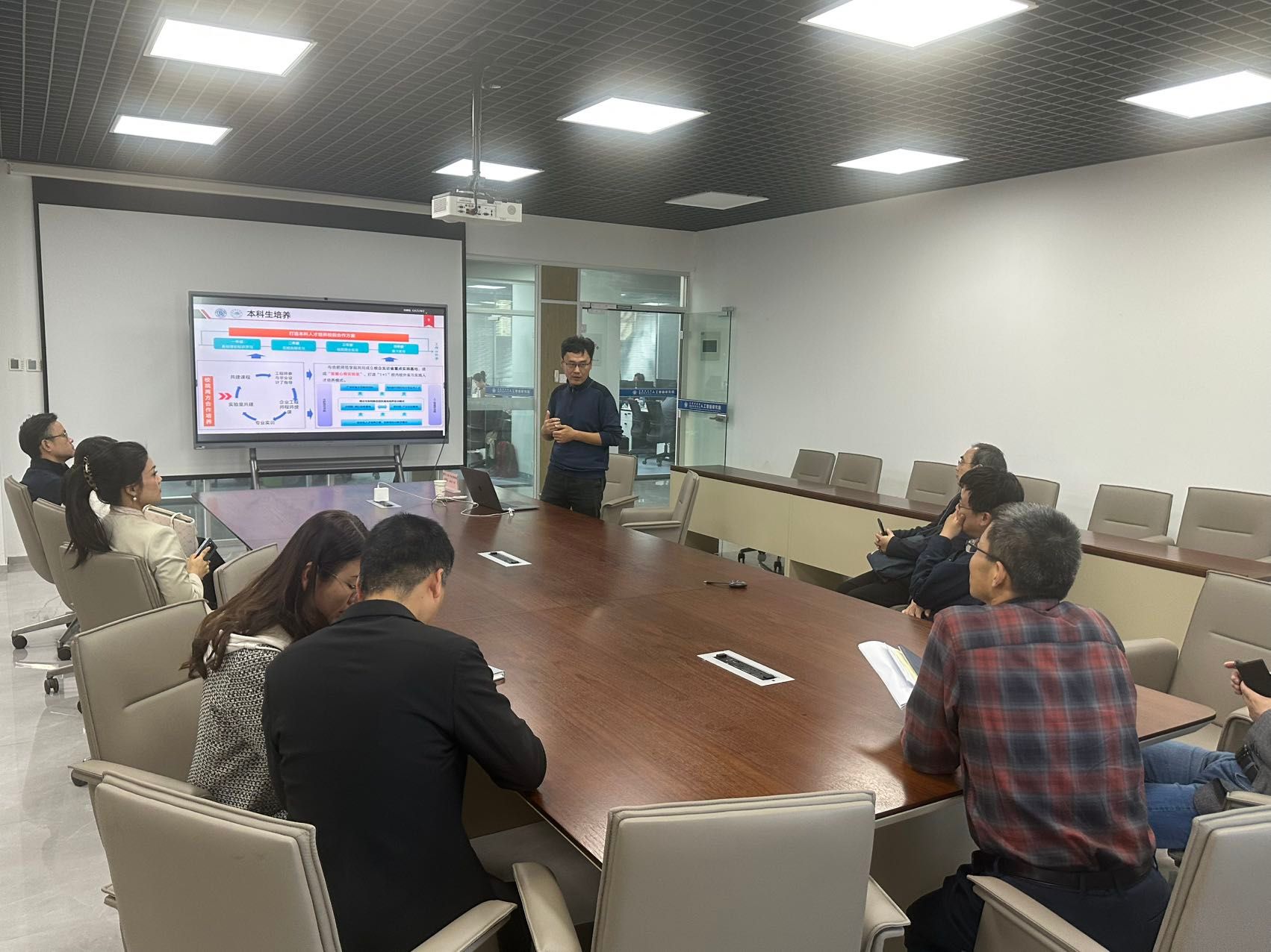 苏喻就“如何打造本科人才培养校院合作方案”进行了全方面的汇报,从本科一年级至本科毕业,基地形成了全流程体系化的培养方案。在公司内,由拥有多年经验的大厂工程师入校为员工授课课程与毕业设计指导;在公司外,由合肥综合性国家科学中心人工智能研究院为本科生提供实践平台,打造产学研一体化的能力培养路线,培养高素质应用型人才。目前,基地已联合培养50余名本科员工,毕业生就业率100%,平均工资提升20%以上的好成绩!