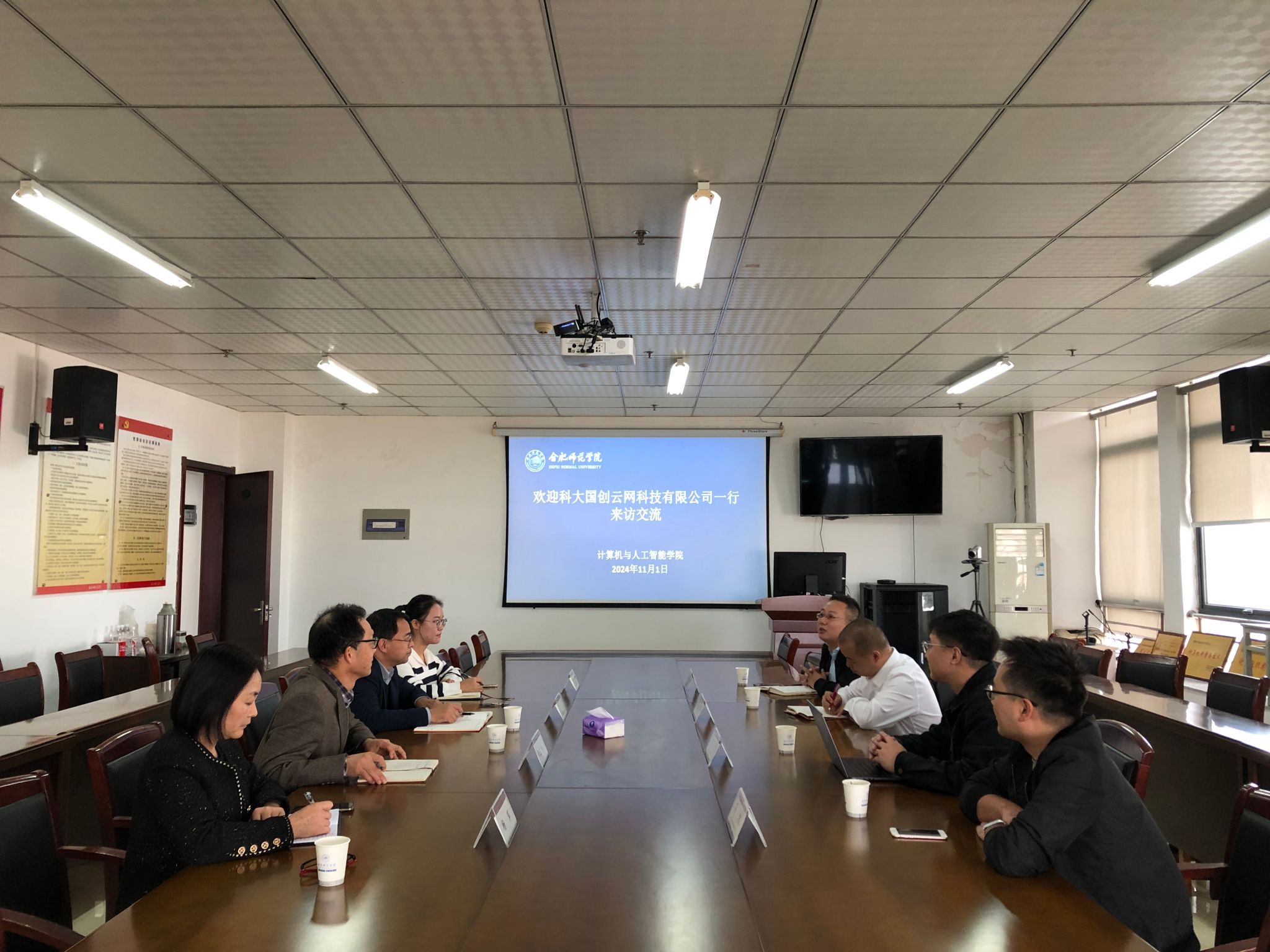 会后,“访企拓岗促就业”校企交流座谈会在行知楼1302会议室举行。公司党政班子成员与科大国创就实习就业、企业见习、产教融合、人才培养等方面进行了深入探讨,希望进一步深化校企合作领域,共同搭建育人平台。