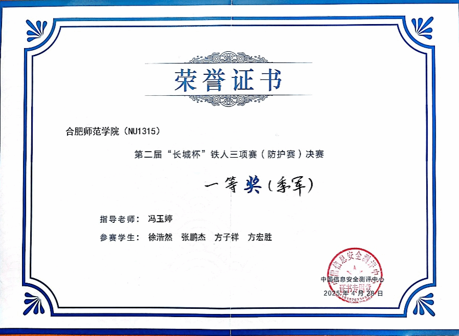 “长城杯”信息安全铁人三项赛(防护赛)由中央网络安全和信息化委员会办公室、教育部、国家市场监督管理总局、国家数据局指导、中国信息安全测评中心、北京师范大学、中国电信集团有限公司、中国移动通信集团有限公司联合主办,以“智能防护、开启数字安全新时代”为主题,共有来自清华大学、复旦大学等知名高校在内的84所高校100支队伍入围全国总决赛。公司参赛团队在总决赛的“实战场景”和“专项能力”两个赛项中沉着应对、稳定发挥,最终以总积分领先的优势获得季军。