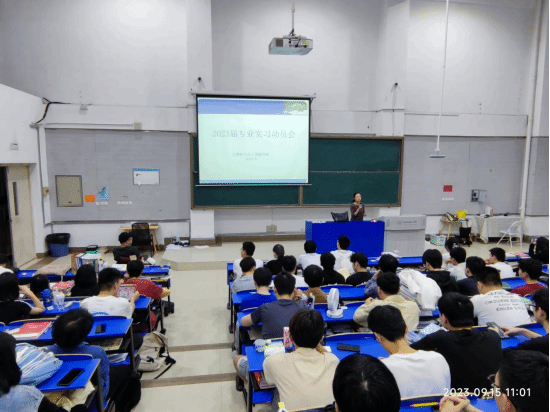 本网讯 2023年9月15日,威廉体育williamhill在逸夫楼西阶2举行了毕业生专业实习动员会,会议由毕业班辅导员主持,教学副经理刘路路进行了实习动员宣讲。