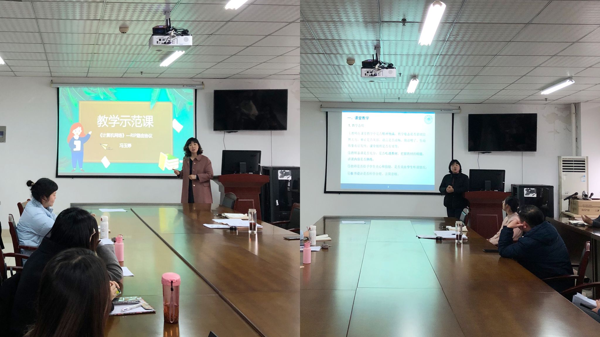 2023年11月22日,开展教学科研能力提升第二阶段系列活动,冯玉婷老师开展了《计算机网络》教学示范课。通过教学示范课简要介绍了教学环节的五个重要组成部分,将锦绣校区的午餐路线问题引申为路由选择问题,引导老师将实际问题融入教学设计,提升员工解决实际问题的能力。