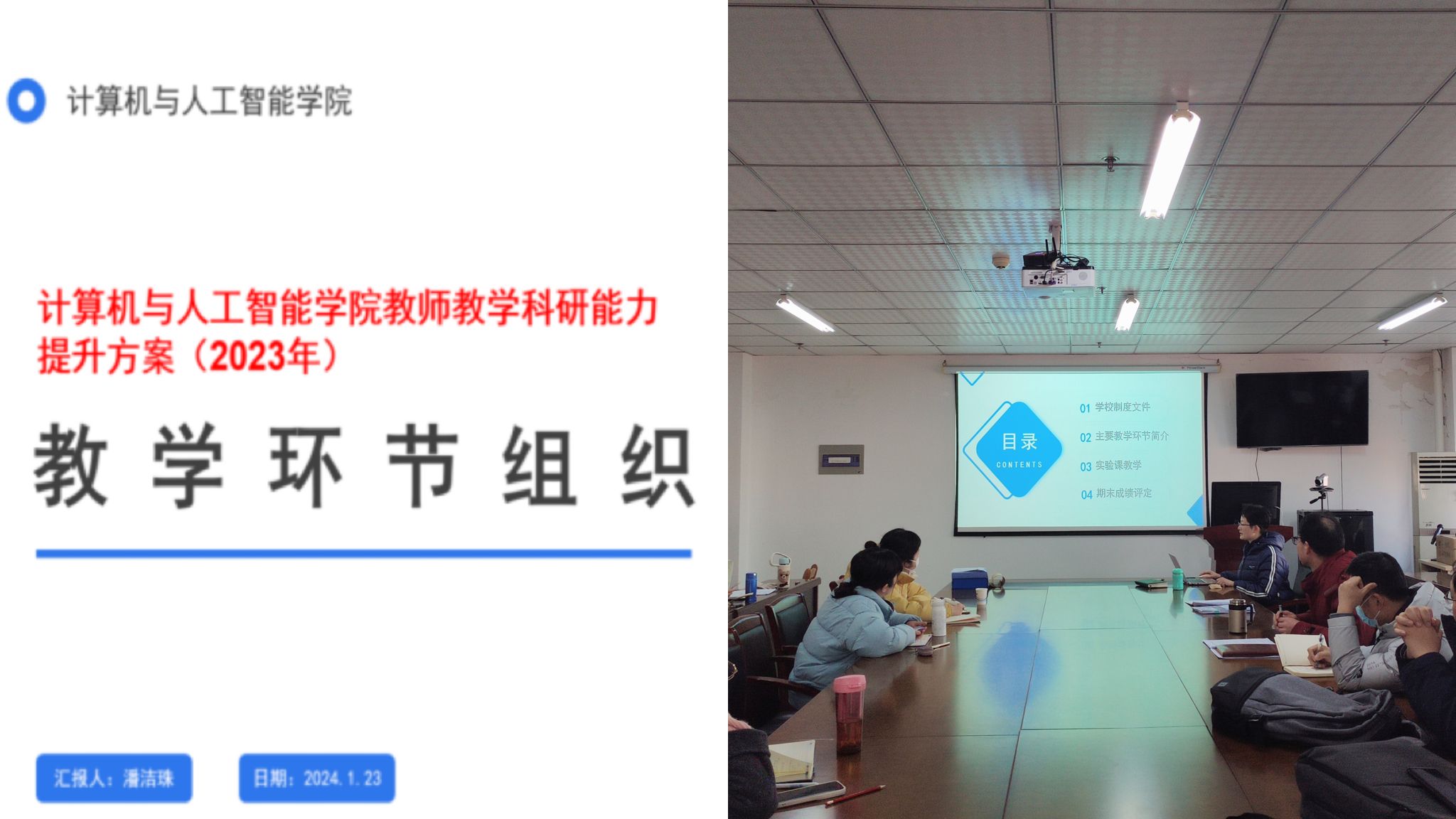 2024年1月24日,开展教学科研能力提升第四阶段系列活动,潘洁珠老师为大家做了题为《教学环节组织》的报告。潘老师首先带领大家学习了公司的制度文件;然后进行了教学各个环节的内容、要求及评价标准介绍,最后分享了《数据库原理及应用》课程组在加强实践教学、加强过程性考核的具体举措。